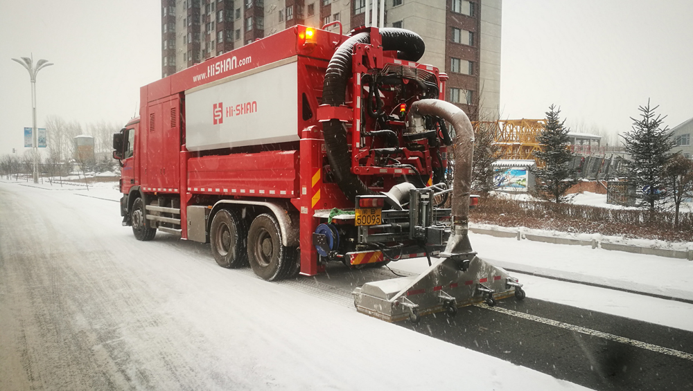相比傳統的除雪車、鏟雪車出動,也只能有效地把雪鏟破,卻不能把冰塊等有效清除干凈,還是給過往的車輛帶來不便。而海山機械的多功能抽吸車的出現給當地居民帶來不一樣的驚喜,當多功能抽吸車工作后,明顯把道路抽吸地干干凈凈,完全沒有感覺是有下過雪的模樣。在海山產品試驗時候,最低溫度甚至達到零下30℃,海山多功能抽吸車卻經受住考驗,以完美的試驗效果展現出來。