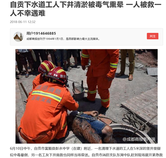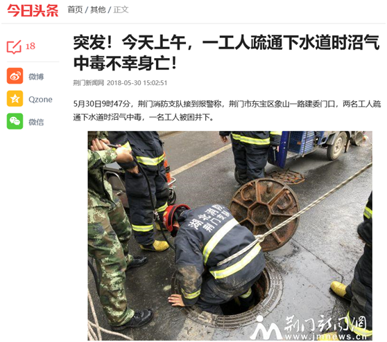 【湖北】一名工人疏通下水道不幸中毒身亡