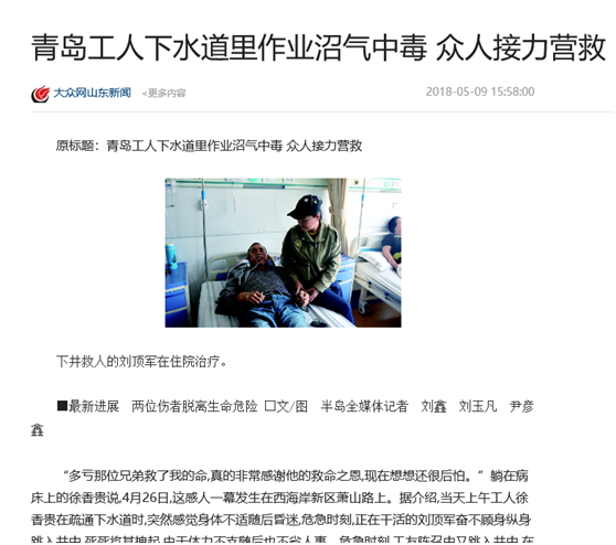 【青島】工人下水道作業中毒