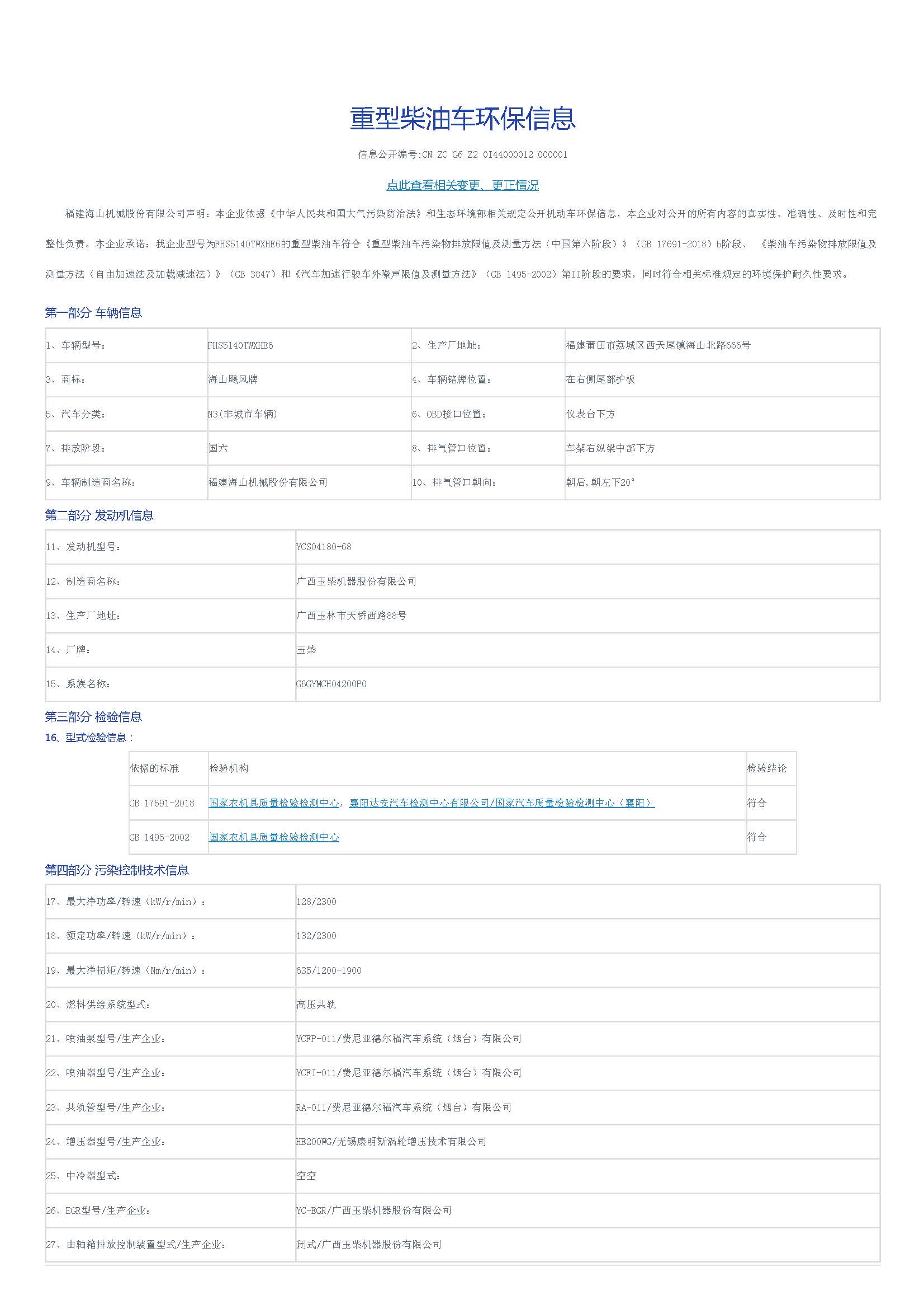 | 排放標準 | 國VI |