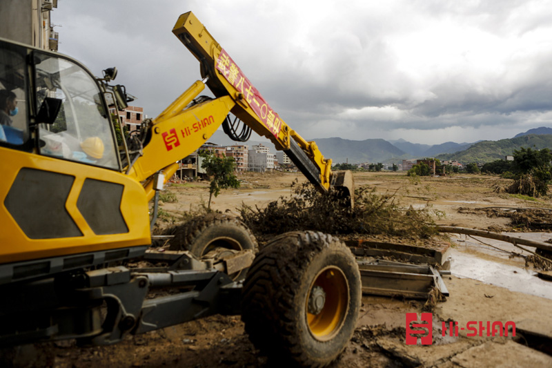 天災無情,人間有愛。福建閩清洪災險情發生后,福建海山機械迅速派出救援隊攜海山獨創的災害應急救援裝備——地面道路機能恢復/污染清除車和步履式挖掘機,馳援閩清縣坂東“尼伯特”洪水重災區,攜手駐閩武警部隊官兵協同作戰,取得卓有成效的救援成果,受到福建省委書記尤權的肯定和災區群眾的贊揚。