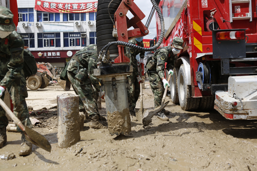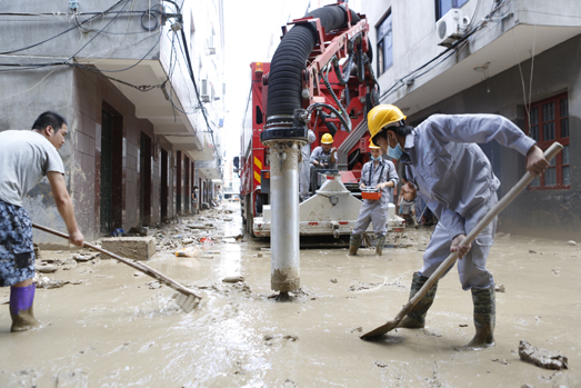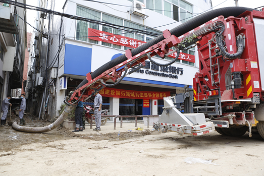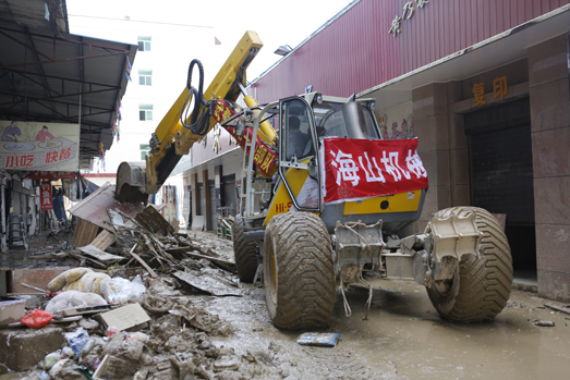 2016年7月10日超強臺風“尼伯特”登錄福建后,閩清地區受災嚴重。海山機械緊急攜帶非破壞挖掘機抽吸車和步履工作平臺,和武警官兵一起對災區的淤泥、垃圾、污染物、報廢車輛等進行清理,為災區群眾快速恢復生產、重建家園提供了有力援助,得到了軍地各級領導的肯定和災區群眾的贊譽。