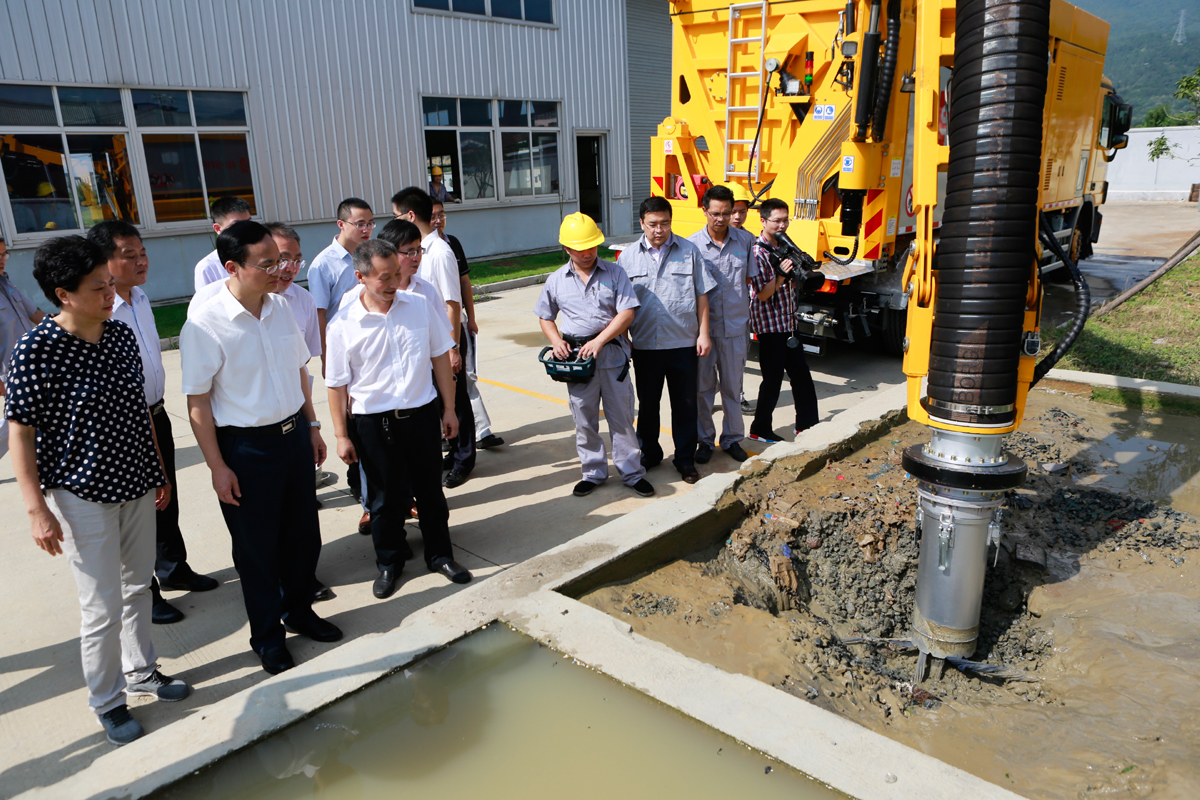 當天上午,市委書記林寶金,市委常委、秘書長沈伯麟,副市長陳志強等市、區領導一行觀摩了國內首創的15噸全地形無人駕駛步履式工作平臺、10噸步履挖機挖掘淤泥作業的展示。在氣動垃圾收集試驗場,公司董事長林愛萍指著正在運行的垃圾收集設備,向林寶金書記匯報說,這是海山自主創新研制的一套氣動垃圾收集系統,當小區居民把垃圾丟入投放口后,通過移動式真空垃圾收集車收集,之后在密封的車箱內進行壓縮后直接運輸到垃圾處理廠。真正能做到垃圾的自動收集、運輸過程無拋灑無異味。林寶金一行看后連連點頭說,“這樣很好!“