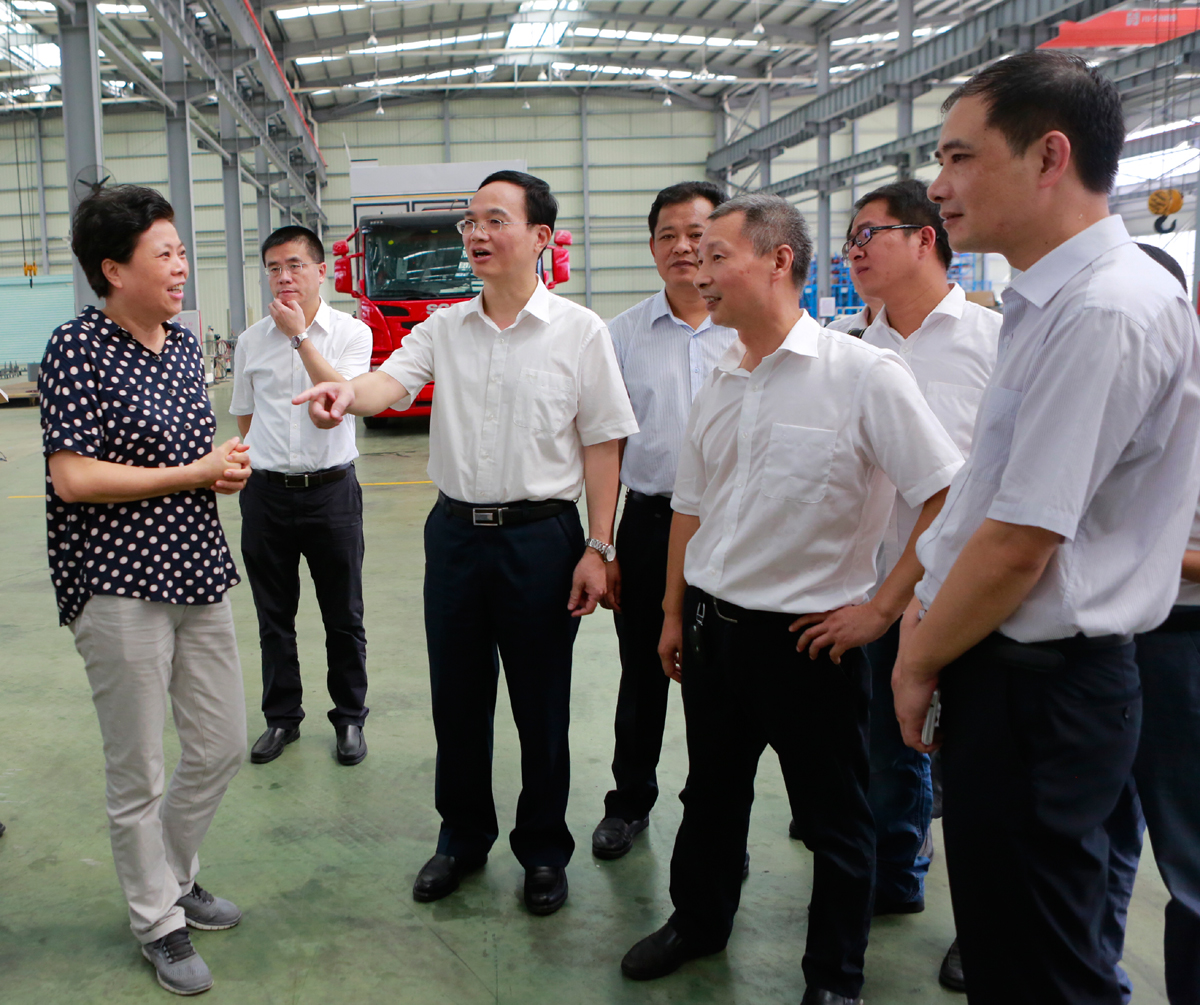 在裝配線上,董事長林愛萍指著一輛剛剛涂裝完的銀灰色車輛向林寶金書記介紹說,“這是海山新下線的道路污染清除車。“林寶金詳細詢問了該車的性能和市場銷售情況,在了解到該車能徹底清除道路污染物,很受市場歡迎時,饒有興致地向林愛萍說,我給你推薦另外一個營銷推廣思路。林愛萍聽后表示,我們一定好好研究和落實書記的建議。