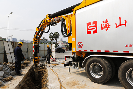 ?莆田市八二一街與幸福路交匯的一處建筑工地的非破壞性管線挖掘,此次施工使用海山機(jī)械的非破壞性挖掘抽吸車,安全、高效地完成了埋有多種管線的地下管道工程開挖。