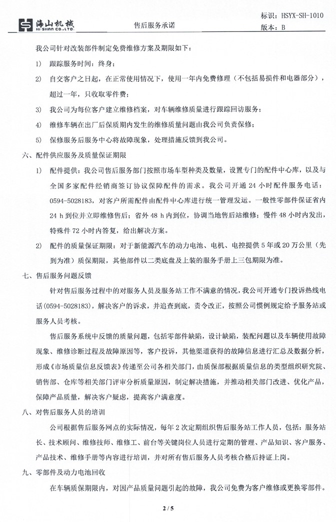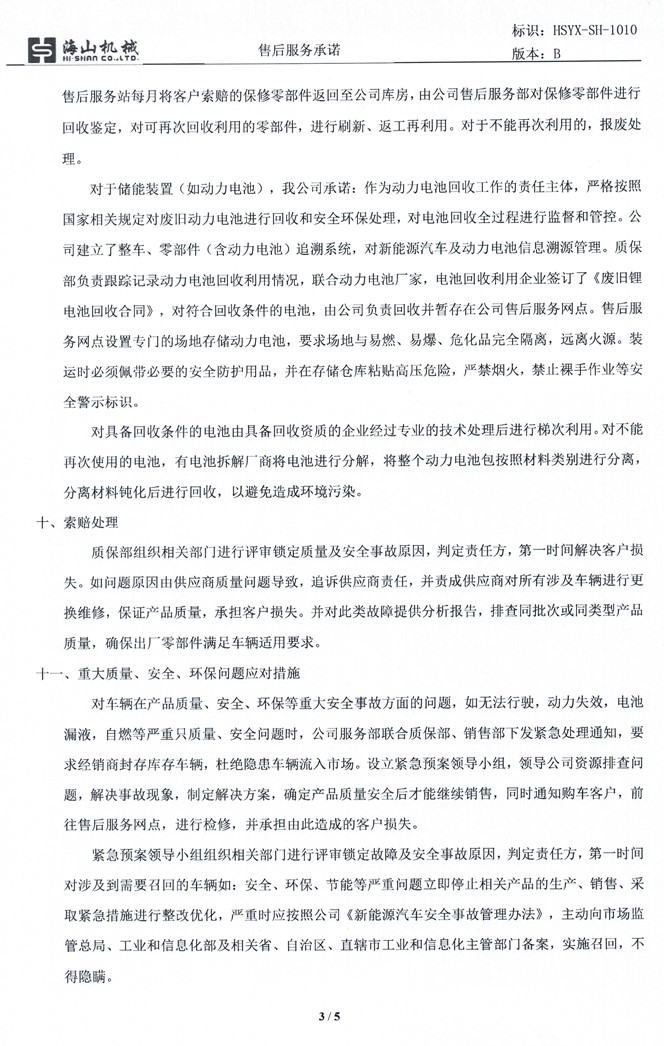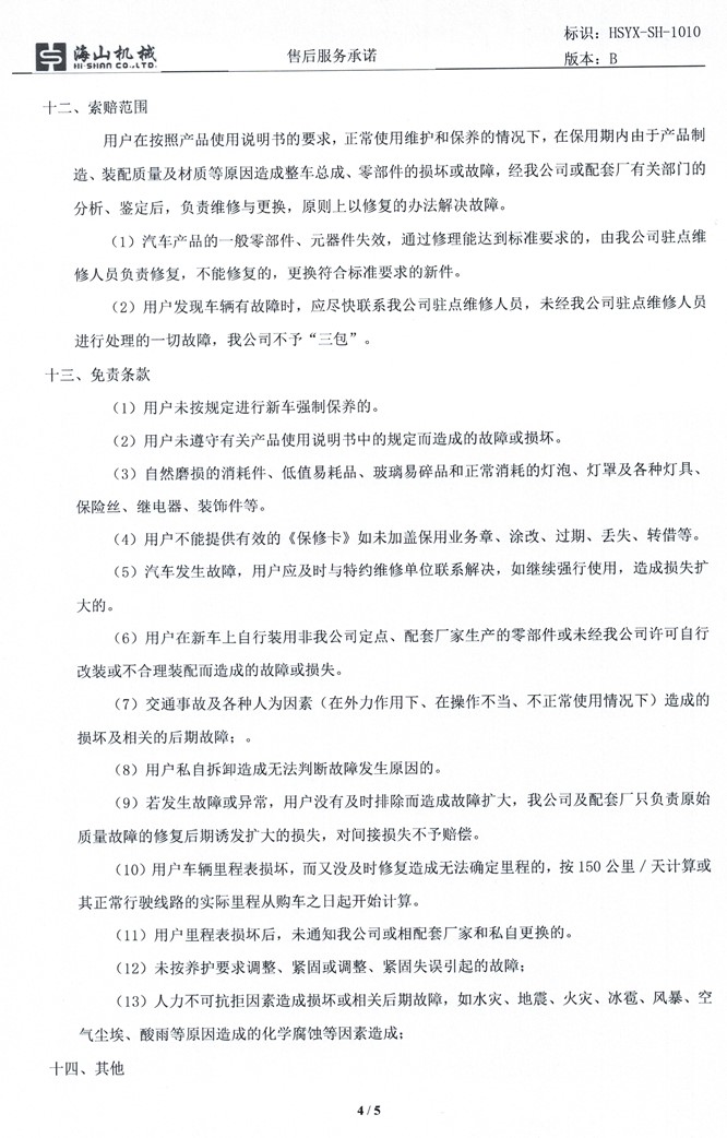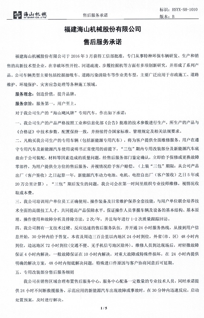 3、質(zhì)保期內(nèi)發(fā)生非人為的機(jī)械故障和零部件的損壞,福建海山機(jī)械負(fù)責(zé)免費(fèi)更換。